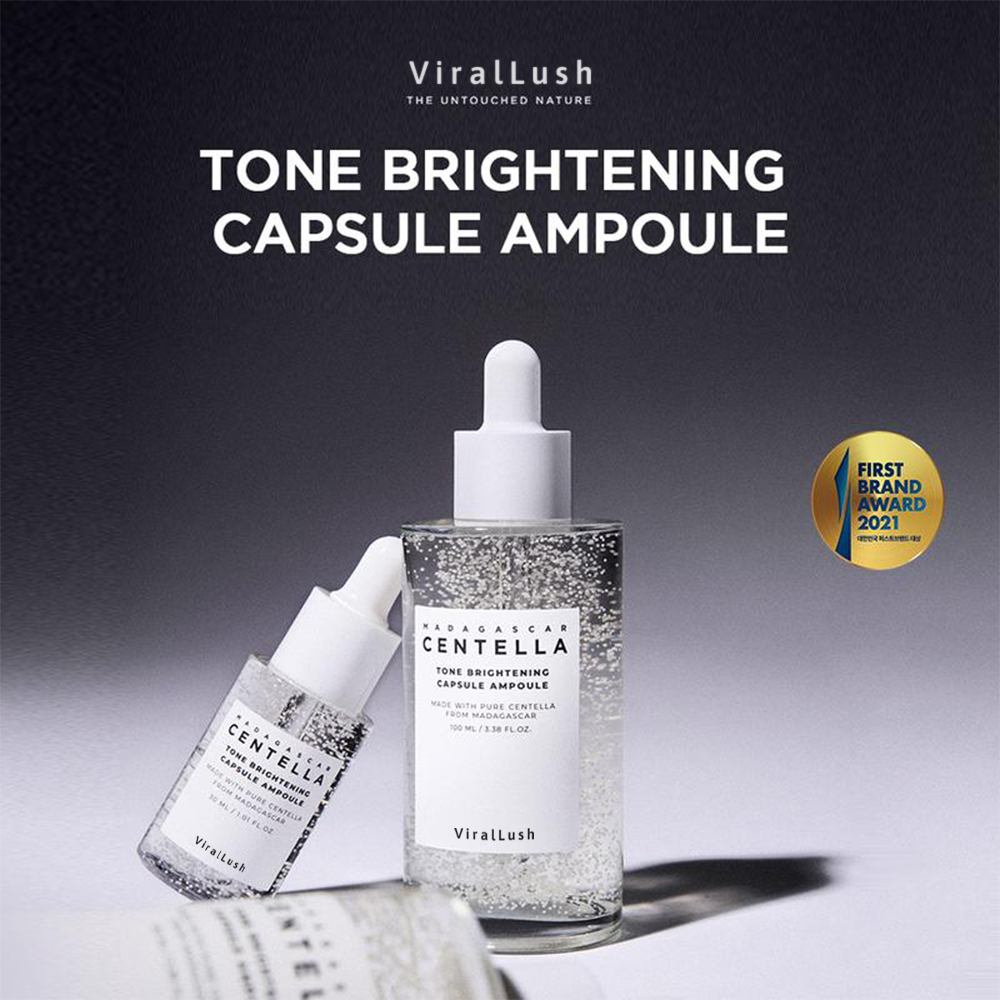 Experience luminous, even-toned skin with our ViralLush Madagascar Centella Tone Brightening Capsule Ampoule. Formulated with the soothing power of Centella Asiatica, brightening capsules, Madecassoside, and Niacinamide, this advanced ampoule deeply hydrates, brightens, and revitalizes your complexion. Perfect for those looking to reduce dullness, even skin tone, and calm irritation, this lightweight formula quickly absorbs to deliver immediate and lasting results. Elevate your daily skincare ritual and achieve visibly radiant, healthier skin with ViralLush—where innovative science meets pure beauty.